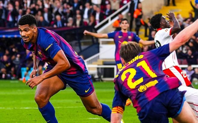 补时阶段进入最后一分钟,德容突入禁区横传禁区,跟上的阿劳霍门前扫射破门,2:1!巴塞罗那完成绝杀!亚马尔、弗里克疯狂庆祝。