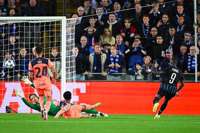第63分钟,巴萨再次为平行站位付出代价,布鲁日反越位战术再熟悉不过了,博尔赫斯梅开二度。